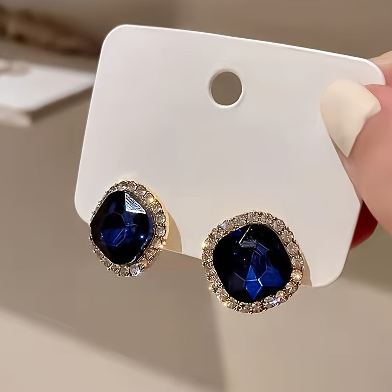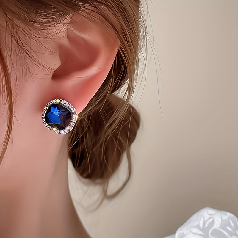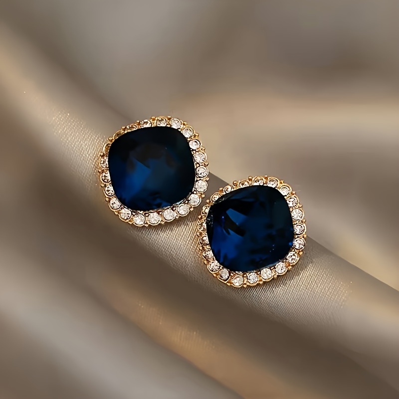 1 Pair Elegant Sparkly Navy Blue Geometric Square Stud Earrings For Women, Perfect For Daily Wear, Banquets & Vacations